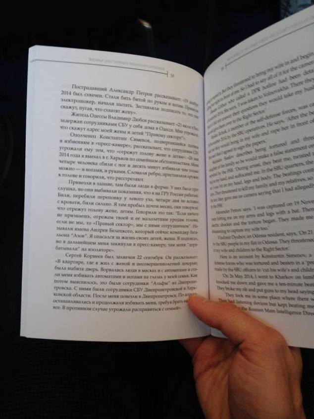 «На конференции ОБСЕ в Вене говорят о безопасности журналистов, о вреде однобокой пропаганды, которая разжигает вражду. Но на входе раздают книгу о военных преступлениях украинских силовиков ... Внутри все, как это любят «готовить» в Москве: «ополченец, отрежут-главу жене-и-детям, право-сектор». Вопрос: почему здесь нет книги о преступлениях российских военных и сепаратистских формирований, хотя бы для баланса», - написал журналист и опубликовал фото пропагандистской брошюры.