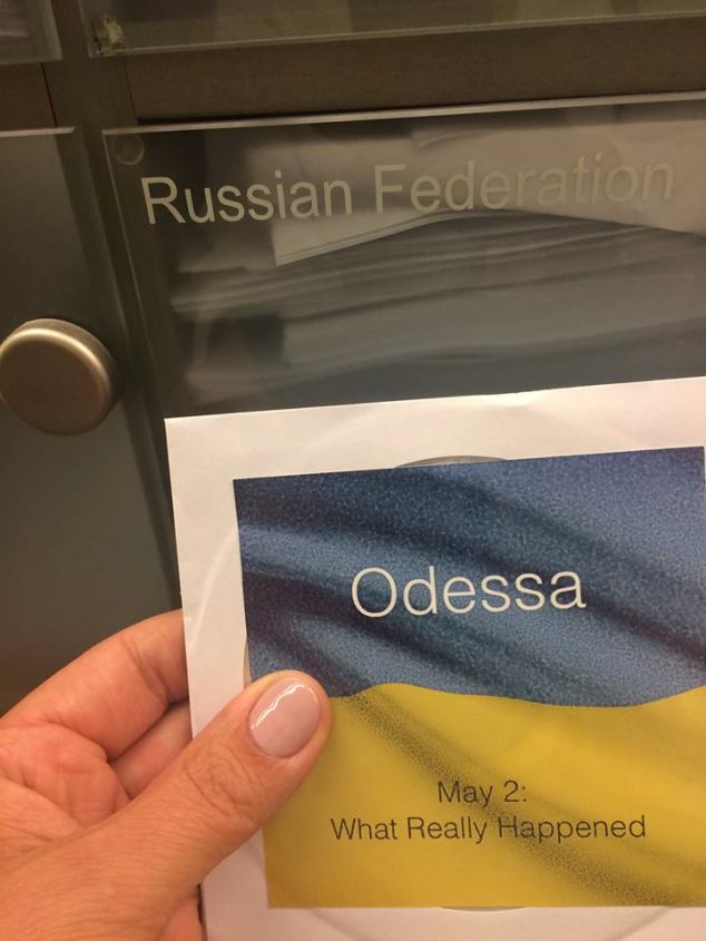 «Чтобы было понятно: на конференции каждая страна имеет специальные ячейки, где можно оставить важные документы или информацию. Оставила фильм группы 2 мая о событиях в Одессе. Всем странам оставила. Но самое большое количество экземпляров - России. Пусть смотрят», - написала она.