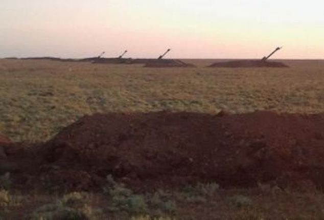 Сегодня в Twitter были выложены фото вкопанных российских гаубиц, направленных в сторону материковой Украины.