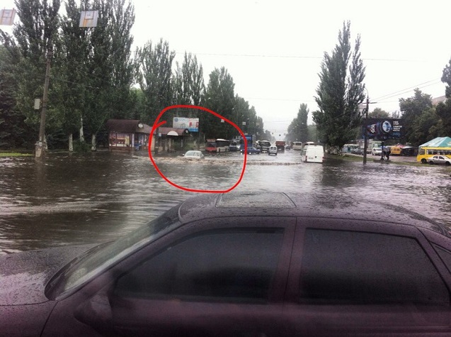 Сейчас спасатели ГСЧС совместно с другими службами города с помощью трех мотопомп проводят работы по откачке воды с проезжей части.