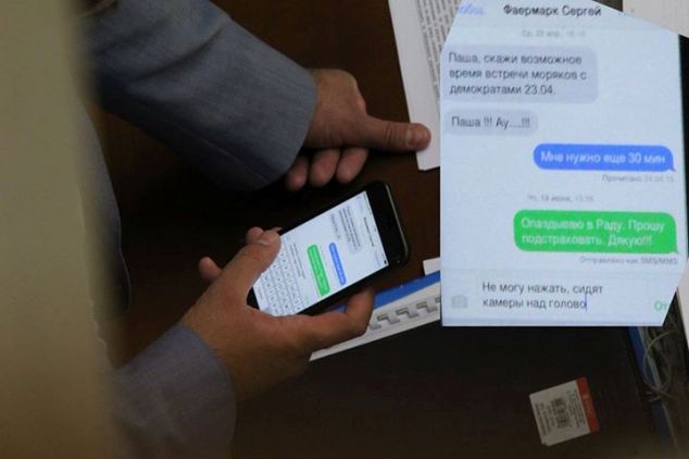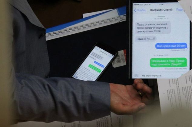 Так, Фаермарк направил своему коллеге смс-сообщение, в котором просит «подстраховать» его, потому что сам он опаздывает в Раду.