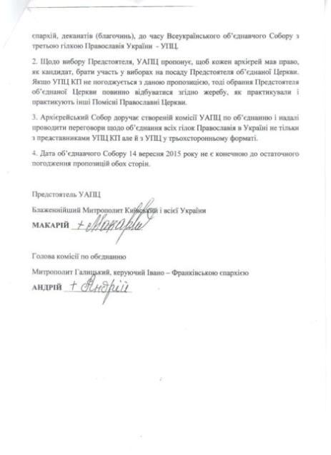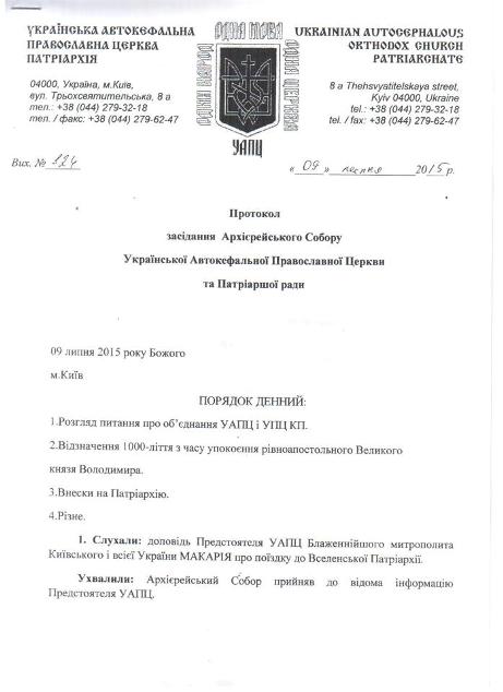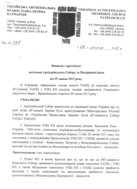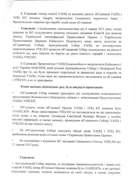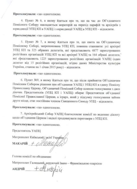 Согласно тексту итогового решения, представители УАПЦ и УПЦ КП до 30 июня этого года должны были договориться о созыве Собора.