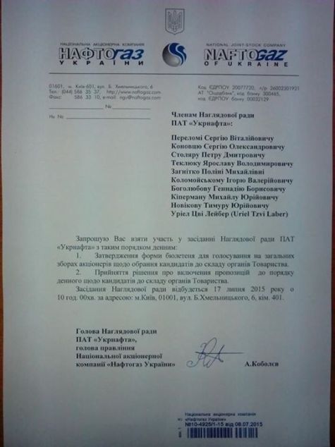 Об этом сообщает исполнительный директор НАК «Нафтогаз Украина» Андрей Пасишник в Facebook утром 10 июля, публикуя соответствующее письмо главы наблюдательного совета «Укрнафты», главы правления «Нафтогаза» Андрея Коболева.