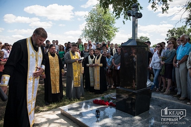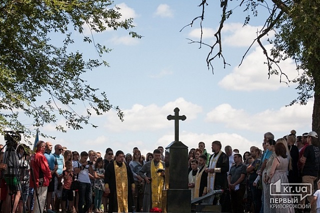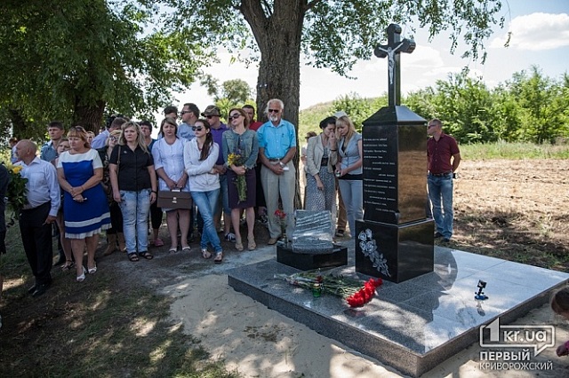 Как рассказала организатор мероприятия Анастасия Кириченко, гранитный памятный знак высотой два метра c крестом, был изготовлен на средства, собранные общественностью. На памятнике высечены слова молитвы «Отче наш» и строки из песни Кузьмы «Пусти меня».