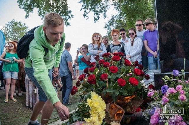 В Днепропетровской области вблизи села Лозоватка под Кривым Рогом, где погиб украинский музыкант Андрей Кузьменко (Кузьма Скрябин), в субботу, 11 июля, открыли памятный знак.