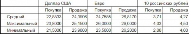 Курсы наличной иностранной валюты: