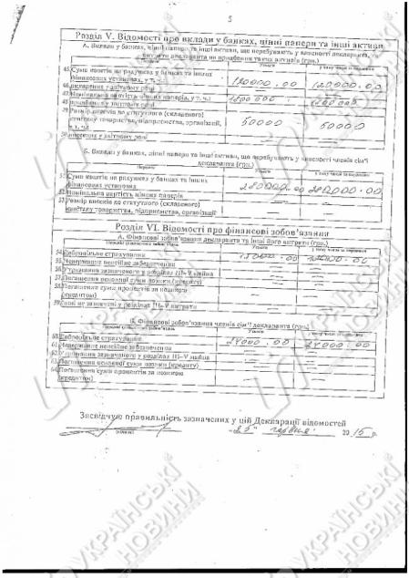 За 2014 год Елена Тищенко сняла со счетов в Лондоне 10 тыс гривен (было 130 тыс), и распродала ценные бумаги на 1,2 млн гривен (было 3 миллиона). Также из декларации исчезли взносы в уставные капиталлы предприятий на 10 млн грн, остались лишь скромные 50 тысяч. Зато в 10 раз выросли суммы на счетах членов семьи - с 42 тыс грн до 280 тыс грн.