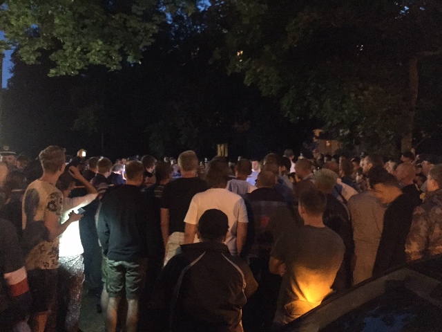 На место происшествия начали подтягиваться молодые люди в одинаковой униформе, вызванные по телефону одним из заблокировавшихся в машине молодчиков, сообщают в штабе Корбана.