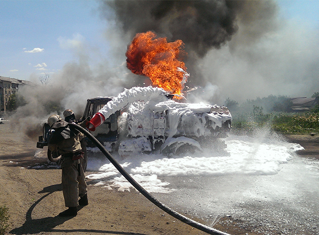 На грузовых автомобилях-цистернах ГАЗ-53, ГАЗ-52 и МАЗ с полуприцепом произошло возгорание. Чтобы предотвратить взрыв, спасатели подали два водяных ствола для охлаждения цистерн с бензином. С помощью пенного и двух водяных стволов возгорание было ликвидировано.