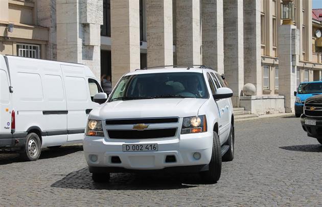На встречу с Геннадием Москалем в Закарпатскую ОГА посол США в Украине Джеффри Пайетт приехал на белом внедорожнике Chevrolet Suburban.