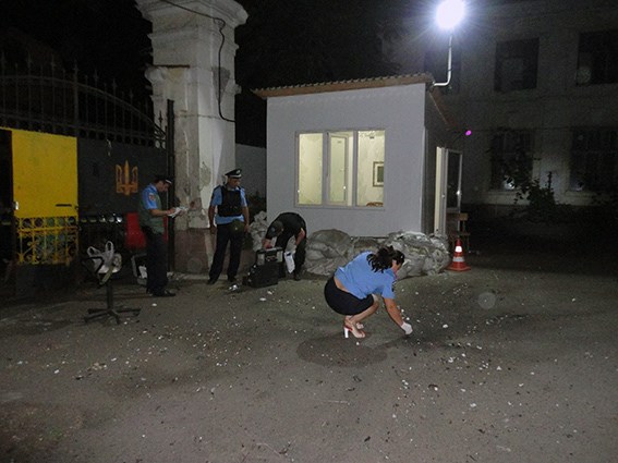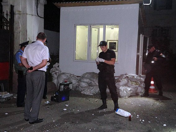 По предварительной информации, двое неизвестных, проезжавшие мимо офиса общественной организации «Самооборона» на мопеде, забросили бомбу на территорию штаба.