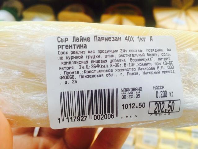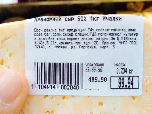 «Я взял кусок сыра и долго смотрел на буквы… Потом взял другой, третий — то же самое, показал жене. Все сыры были сделаны из какой то адской смеси: свинины, сала, говядины, конины и мяса птиц», — отметил он.