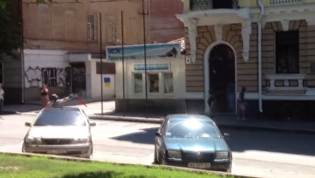 На 3 минуте 17 секунд ролика видно, как один из активистов в балаклаве подбегает к дверям здания и целенаправленно производит выстрел в офис. Из видео неясно, является ли этот пистолет огнестрельным.