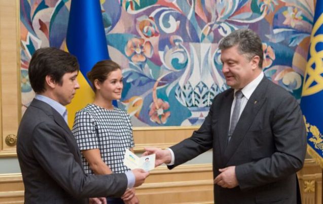«Ваш пример убедительно демонстрирует, что молчать нельзя, надо жить в ладу со своей совестью», - сказал Порошенко, вручая украинские паспорта Гайдар и Федорину.
