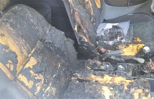 В результате пожара повреждены передние сидения и часть панели приборов, а также задымлен салон.