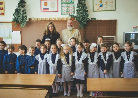 Стоимость гимнастерки и брюк для мальчика составляет 1250 рублей и 1350 рублей соответственно, белый фартук для девочек стоит 900 рублей.