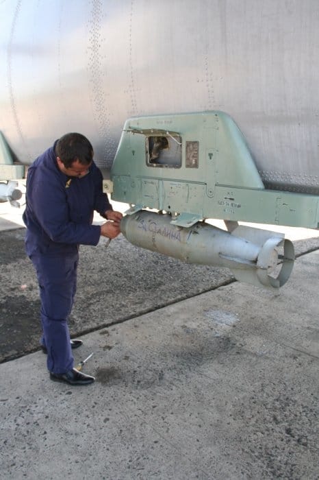 Внимание Bild привлек снимки с бомбами, подвешенными под крылом Ан-26, которые были опубликованы на специализированном Центральном военно-морском портале Flot.com. На одной из бомб была надпись «На Берлин!», на другой — «За Сталина!».