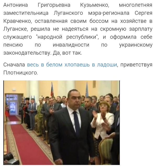 Заместитель «народного мэра» Луганска Антонина Кузьменко оформила себе пенсию по инвалидности по украинскому законодательству.