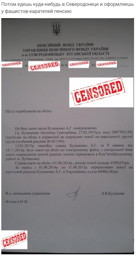 Украина выплачивает пенсию чиновнице из «ЛНР» (ДОКУМЕНТ)