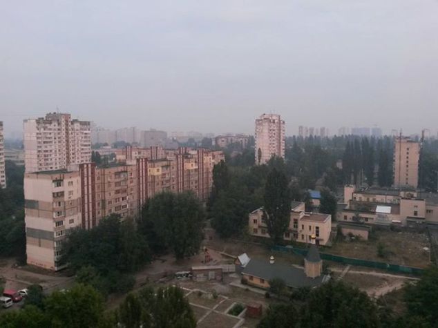 Святошинский район Киева затянуло дымом. Об этом сообщает корреспондент «Главкома».