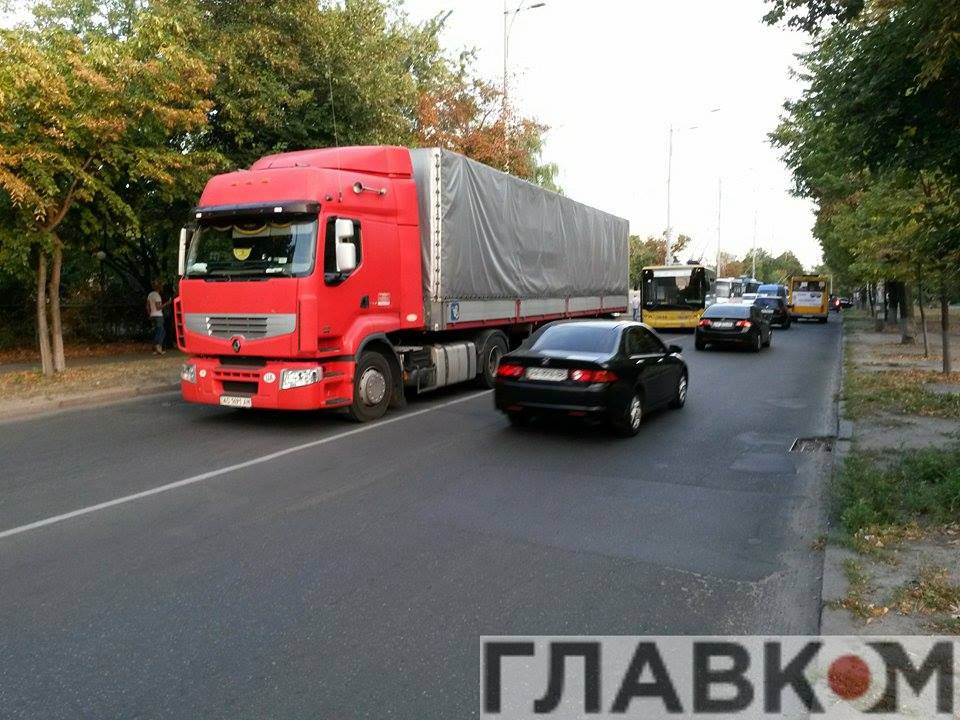 В Киеве на улице Героев Космоса произошло ДТП с участием легкового автомобиля и фуры. Об этом сообщает с места событий корреспондент «Главкома».