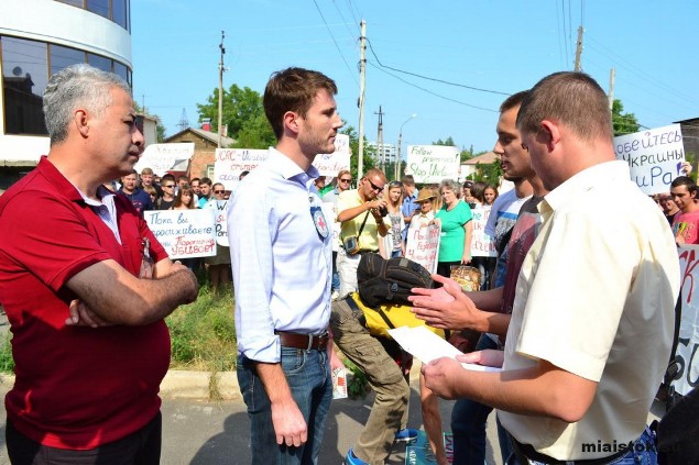 В пятницу, 28 августа, несколько сотен пророссийски настроенных молодых жителей Луганска провели пикет около офиса Международного комитета Красного Креста (МККК).