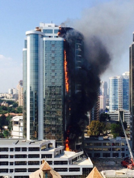 В Одессе горит высотное здание (ФОТО, ВИДЕО)