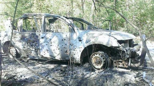 Обнародованы фото расстрелянного под Счастьем автомобиля мобильной группы ВСУ