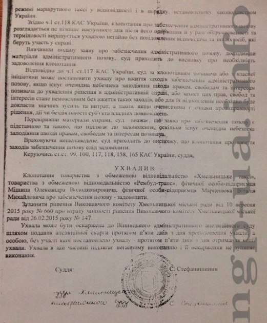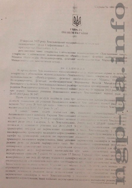 Иск в суд подавали предприятие ООО «Хмельницкое такси», ООО «Рембудтранс», физические лица-предприниматели Александр Мишин и Виталий Марцинюк.