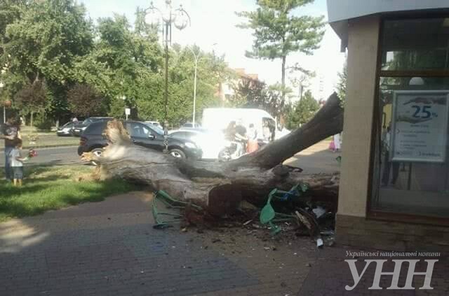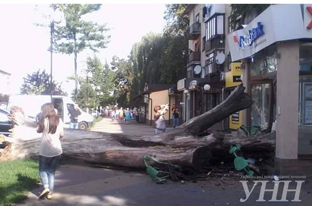 В центре Ужгорода в субботу утром на тротуар упало дерево, сообщает УНН с места происшествия.