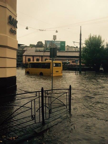 Дожди, которые начались еще в субботу после обеда, продолжают заливать Львов. Коммунальные предприятия вызвали всех работников на работу в выходной, которые прочищают канализационные стоки.