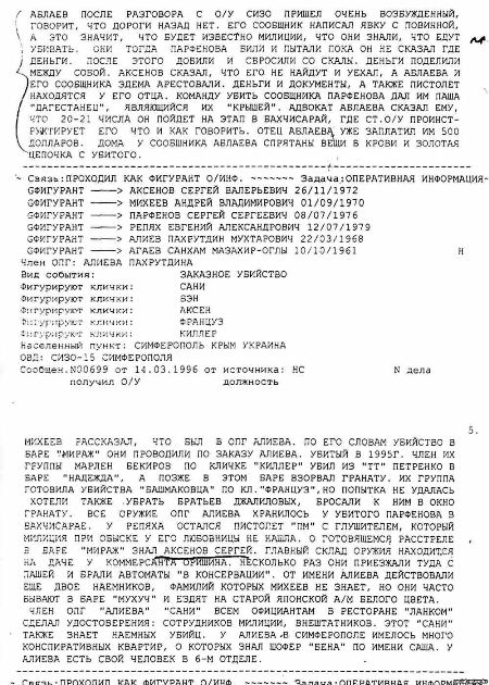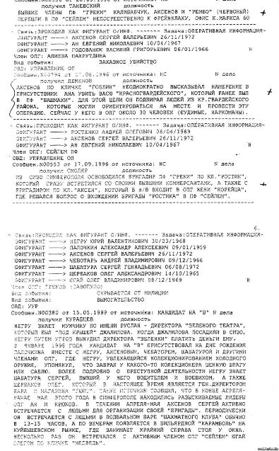 «Они (документы – ред.) проливают свет на то, чем раньше занимался нынешний «глава республики» Крым Сергей Аксенов, которого в определенных криминальных круга называли не иначе как «Гоблин». Внимательно изучил данное досье... Послужной список «Гоблина», как фигуранта оперативных сводок, впечатляет – заказные убийства, вымогательства, участие в ОПГ и т.д», – написал Мешков в Фейсбуке.
