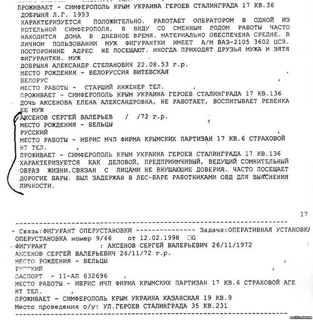 В частности, Мешков указывает на сотрудничество Аксенова и Геннадия Москаля, который в 1997 – 2000 годах возглавлял крымскую милицию и одновременно был заместителем министра внутренних дел Украины.
