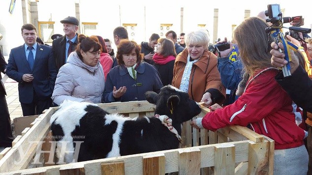 «В 2013 году бабушка этой телочки отстаивала на этом месте права украинских жителей села. Теперь пора и этому теленку привлечь внимание депутатов», - отметили активисты.