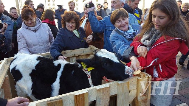 По словам активистов, теленок - это символ села, которое кормит страну.