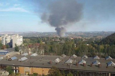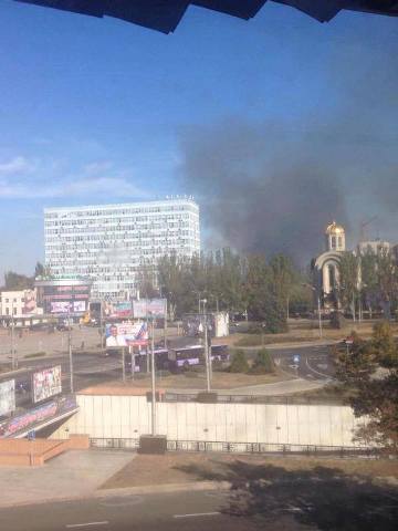 Огромный столб черного дыма поднялся сегодня вечером в Киевском районе Донецка. По некоторым данным, горел центральный городской военкомат, в котором разместились боевики «ДНР».