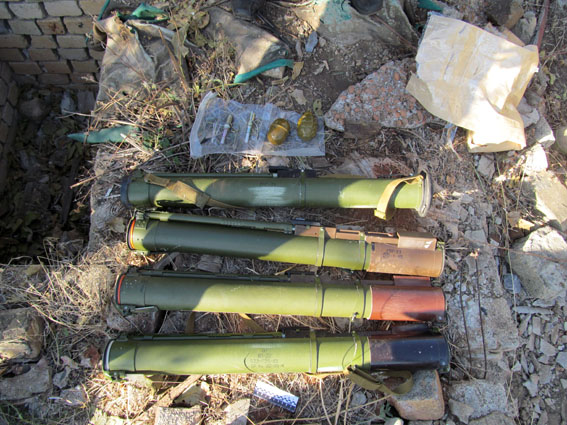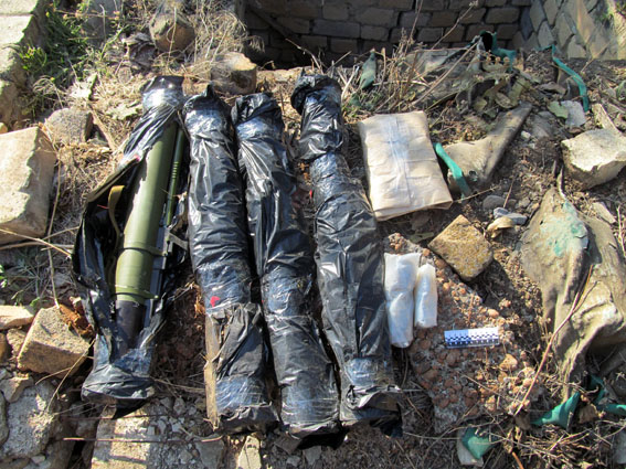4 противотанковых гранатомета, гранаты Ф-1 и РГД-5, два запала к ним и 270 патронов калибром 5,45 мм изъяли сотрудники Славянского городского отдела милиции вблизи села Сергеевка.