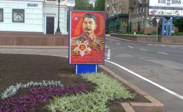 В центре Донецка вывесили три портрета советского диктатора Иосифа Сталина.