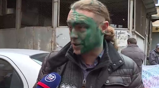 «Свободовца» Мирошниченко под Печерским судом облили зеленкой (ФОТО)