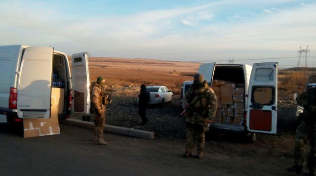 В Донецкой области подразделение налоговой милиции «Фантом» задержало три автомобиля, которые нелегально перевозили на оккупированные боевиками территории партию продуктов, алкоголя и косметики.