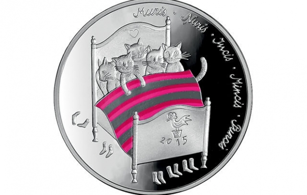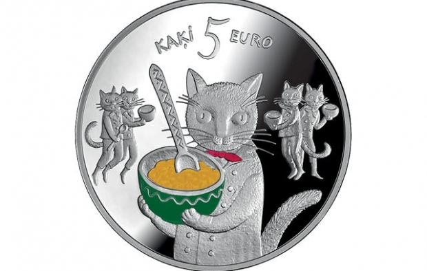 Монета достоинством пять евро сделана по мотивам сказки латышского автора Альберта Кроненберга «Пять котов». В сказке рассказывается о котах по имени Мурис, Нюрис, Инцис, Минцис и Пунцис.