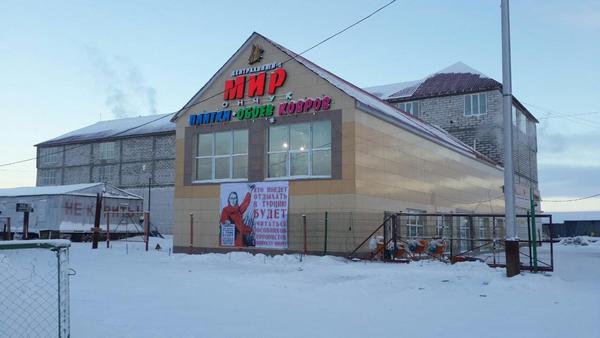 В Салехарде располагается несколько магазинов «Центральный», плакат размещен на фасаде только одного из них, он находится на выезде из города.
