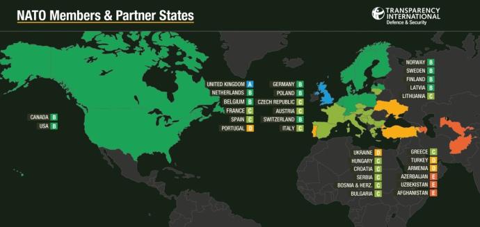 Согласно исследованию, Украина попала в группу с очень высоким риском коррупции (по антикоррупционному индексу обороны страны делятся по шкале от А (очень низкий риск коррупции) до F (критический риск), Украина попала в группу D).