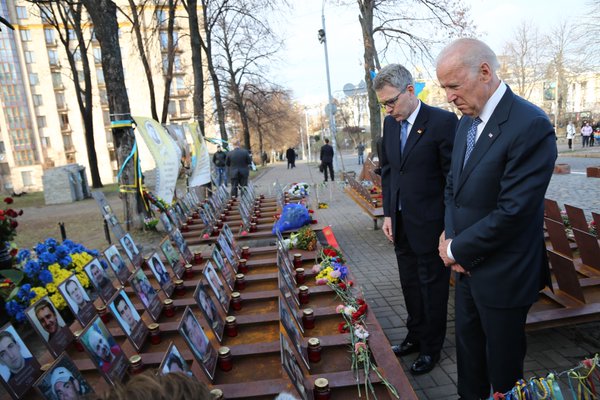 Вице-президент США Джозеф Байден почтил память героев Небесной сотни, передает пресс-служба посольства США в Украине.