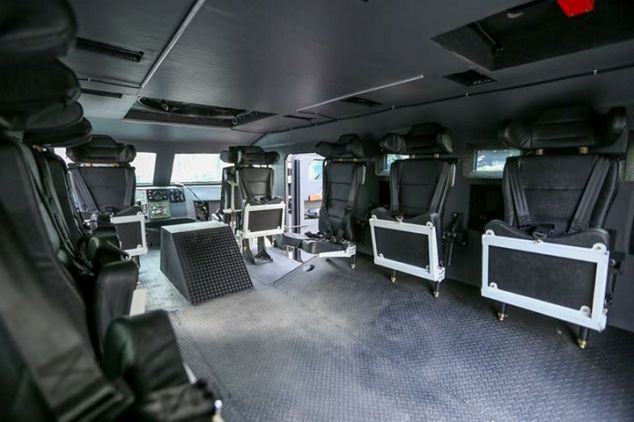 Министр также описал основные технические характеристики машины: двигатель мощностью 270 л.с., V-образная форма днища и V-образная геометрия самой бронекапсулы, что позволяет выдерживать подрыв заряда мощностью 6 кг в тротиловом эквиваленте; более легкая бронь из шведской стали твердостью 560, улучшенные рессоры, амортизаторы и бронестекло и многое другое.