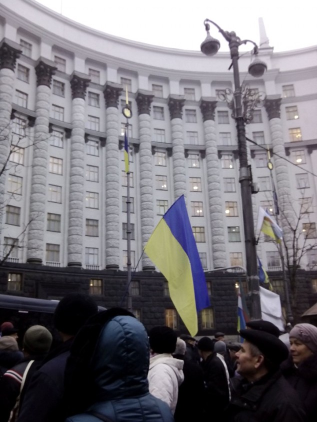 К зданию Верховной Рады Украины со стороны Кабинета министров направляется колонна митингующих.