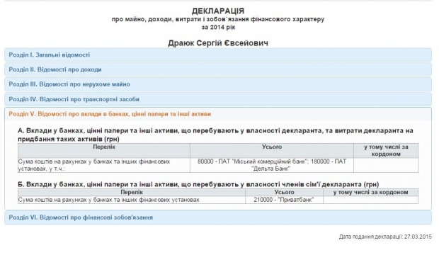 Наибольшее количество незадекларированного бизнеса на одного человека – это 10 компаний Сергея Драюка («Народный Фронт»). В оригинале своей декларации за 2014 года нардеп не указал ни одного бизнеса.