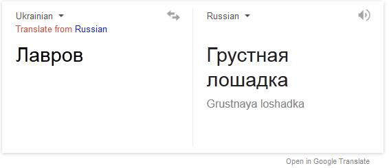 Так «Російська Федерація» переводится как «Мордор», фамилию министра иностранных дел России Сергея Лаврова — как «грустная лошадка».
