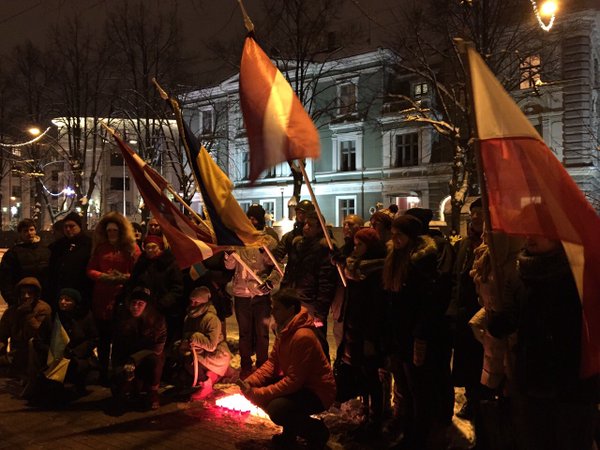 В понедельник, 4 января, граждане Литвы, Латвии и Эстонии устроили одновременные акции солидарности возле дипломатических представительств Украины.