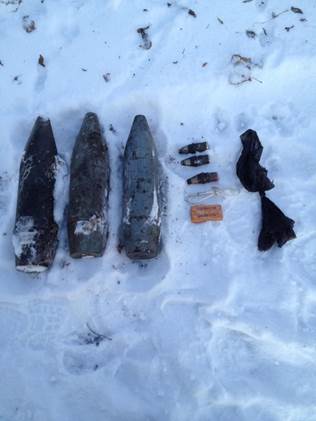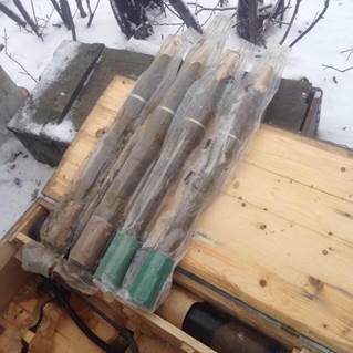 В лесополосе возле села Бугас Волновахского района сотрудники СБУ изъяли из тайника три танковых снаряда калибра 125 мм, 4 выстрела ПГ-9 к противотанковому гранатомету, гранатомет РПГ-22; 200 выстрелов ВОГ-17 к автоматическому гранатомету, 250 снарядов к пушке калибра 30 мм и 10 тыс. патронов различного калибра, информируют в СБУ.